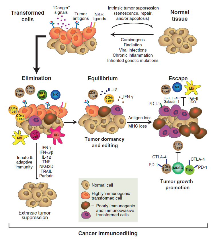 Schreiber RD, Old LJ, Smyth MJ. Cancer immunoediting: integrating immunity's roles in cancer suppression and promotion. Science 331, 6024, 1565-1570 (2011).